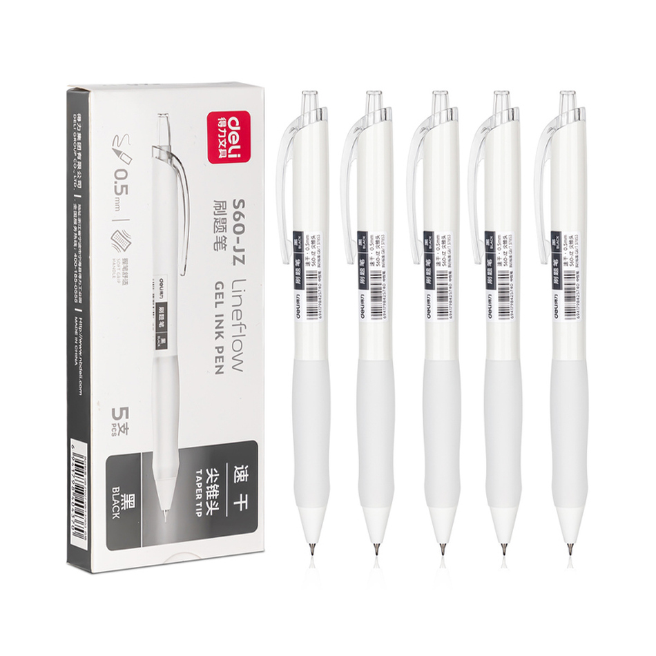 得力刷题笔0.5mm尖锥头-黑色(5支)