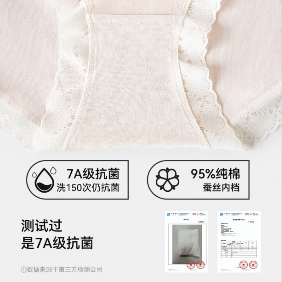 品彩女士内裤棉感蚕丝抑菌3条装 颜色随机