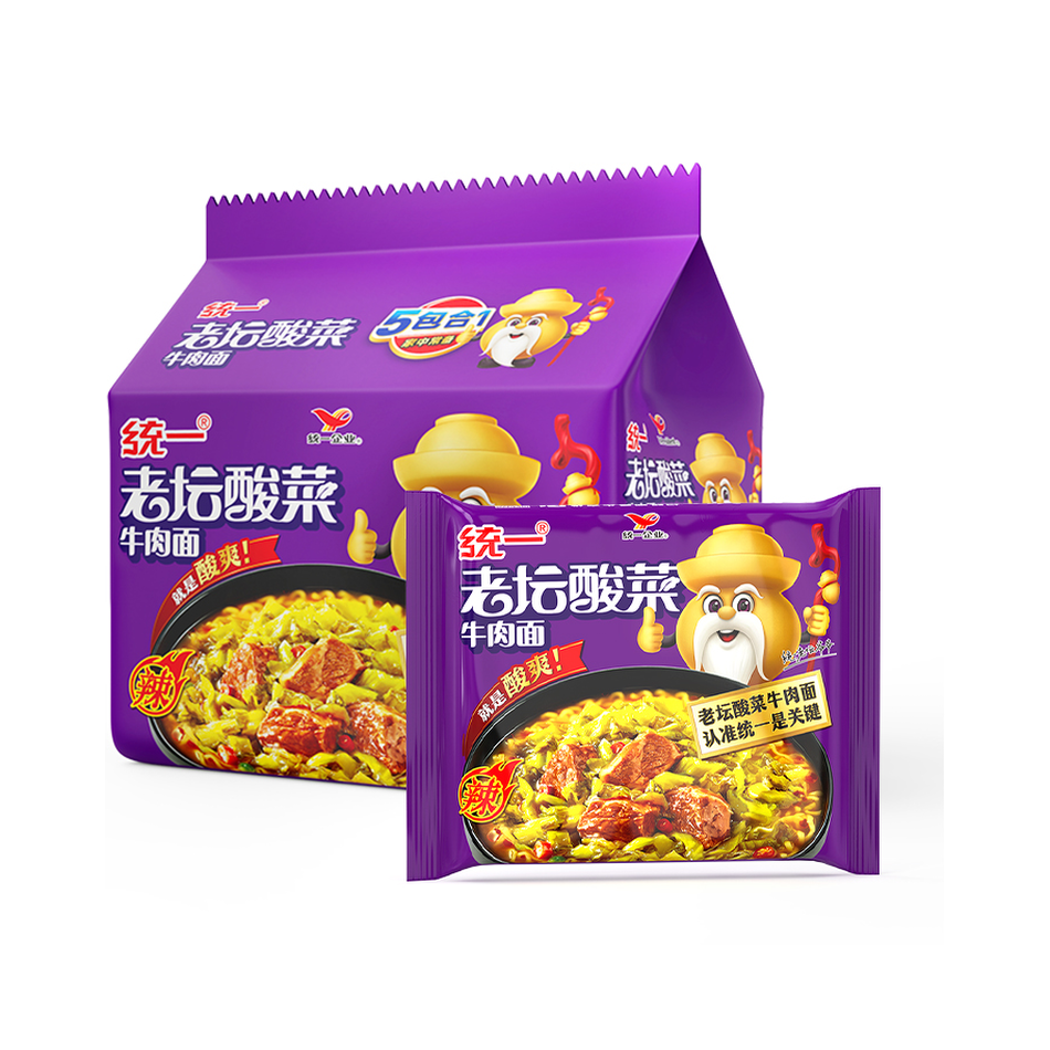 统一老坛酸菜牛肉面151g*5袋